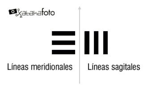 Líneas Sagitales y Meridionales: Me parece importante aclarar esto que luego mucha gente se confunde. Se ve muy fácil si nos ponemos de frente a las líneas y vemos la imagen inferior (si lo piensas puedes llamarlas horizontales y verticales):