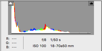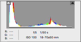 Después de ir probando de forma gradual, y aplicando la «Ley de reciprocidad«, con una sobreexposición de 2 pasos y 1/3 EV, se observa que el histograma ya se ha desplazado más hacia la derecha y los objetos de la escena se aprecian más blancos.